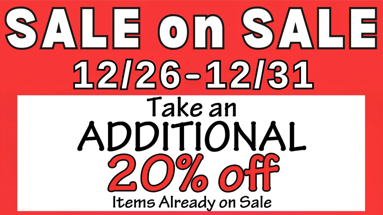 End the year with a bang! Browse our sale items and get an additional 20% off!! 12/26-12/31