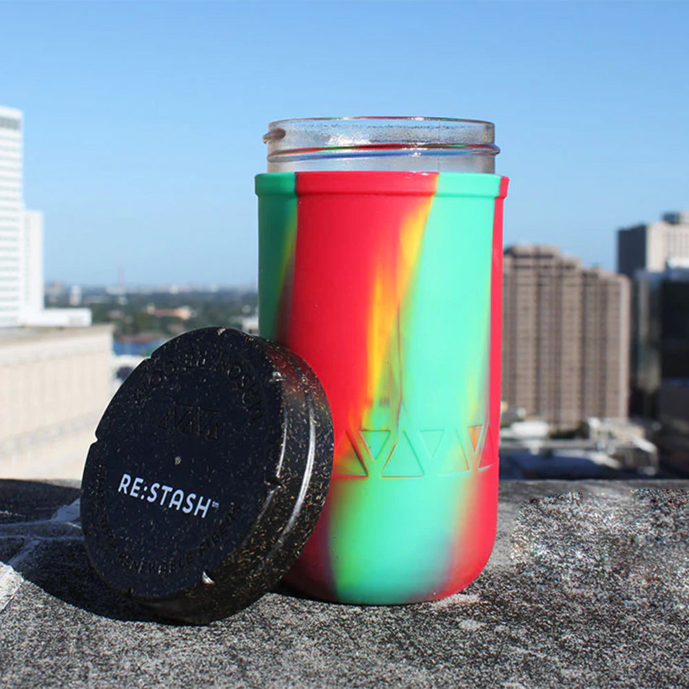At Mason-re we continue to innovate with the world's first silicone koozie for the 12oz mason jar paired with an eco fiber child resistant lid to create the perfect reusable stash jar. As usual the koozie fits like a tailored glove and is made from 100% silicone. Our lids are made in America from FDA Polypropylene that is 30% repurposed farm waste and hemp fibers, allowing you to store your stash safely away from children as well as sunlight.