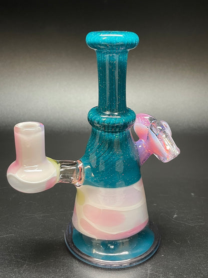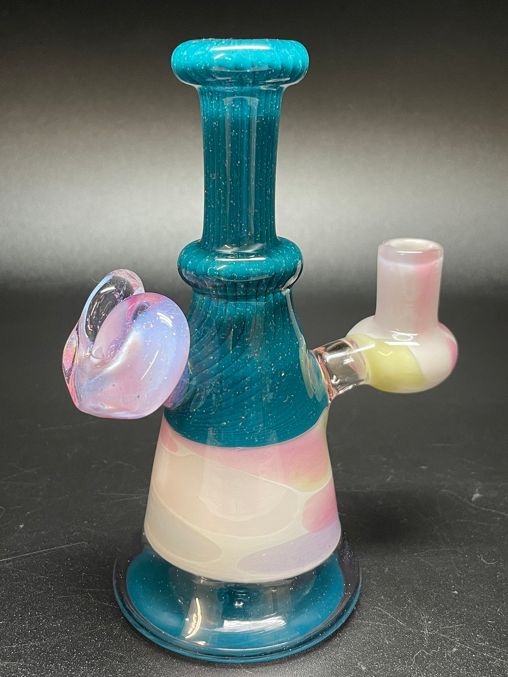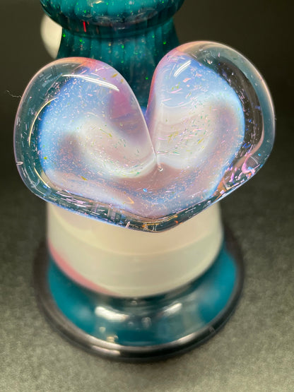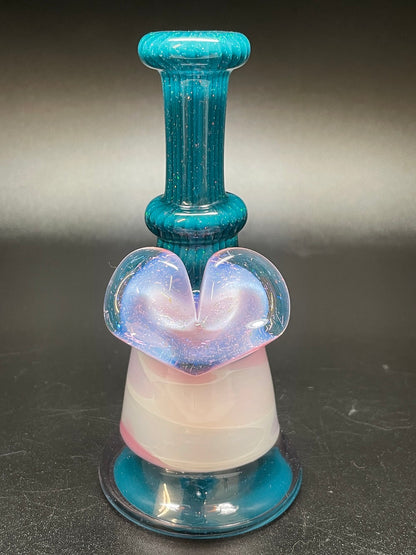 This Cotton Candy Mini Bubbler features Peacock Crushed Opa, Candy Rain, and a Purple Lilac heart.