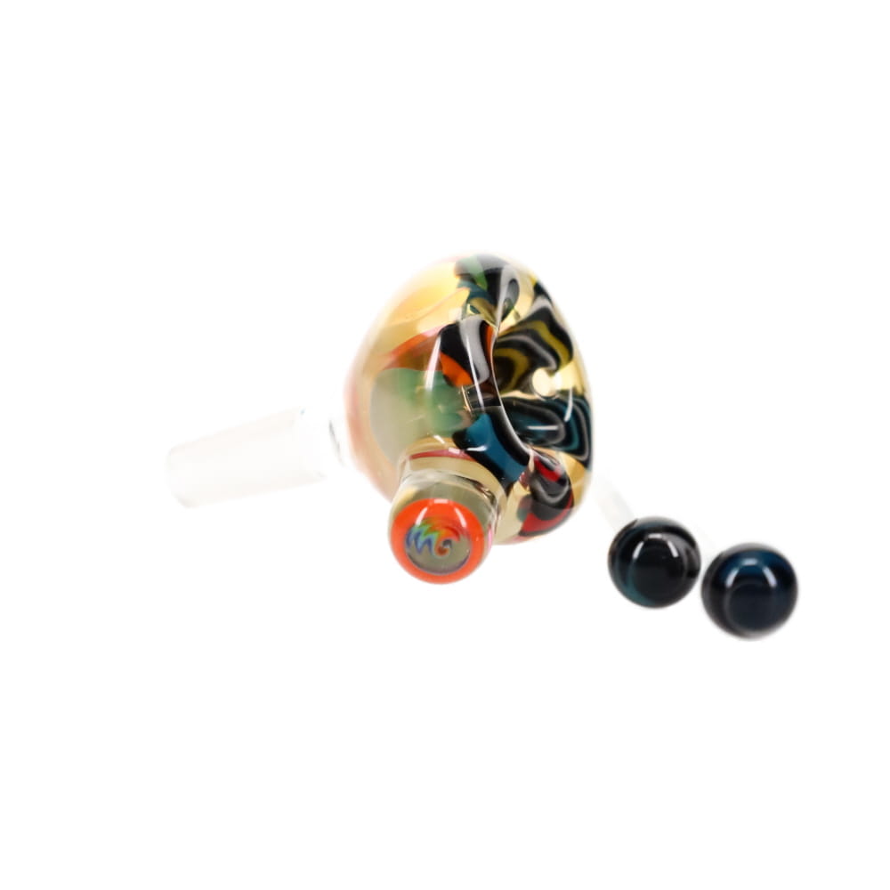 Look inside the bowl. Not your average slide. This piece is designed for concentrates. The 2 holes are at the top of the bowl and the heat wands (heat sticks) are meant to be heated up to then be able to heat up your material in the slide. This is a 10mm bowl.