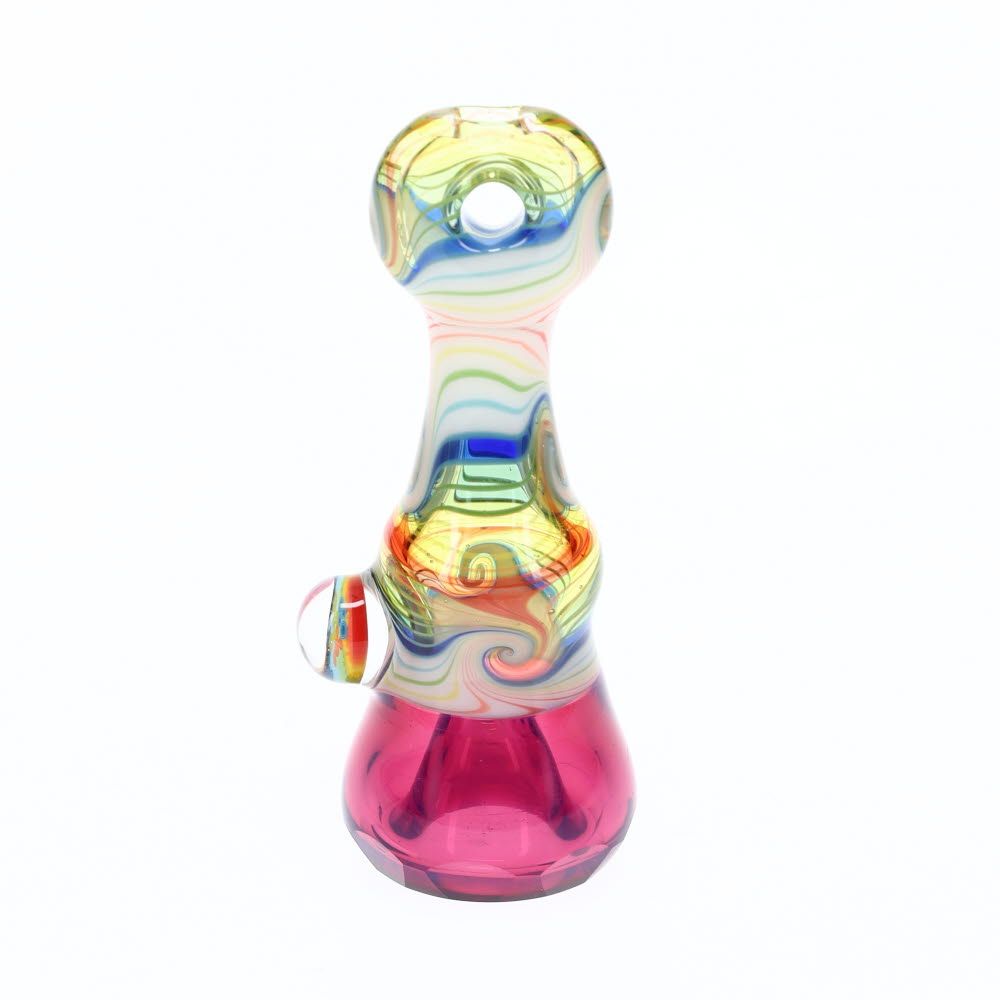 Cowboy Glass Magenta/White Wig Wag Rainbow Faceted Onie