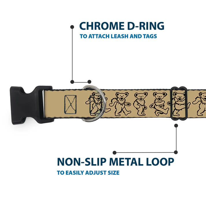 Grateful Dead Dancing Bears in Tan and Black Dog Collar 1" inch Wide