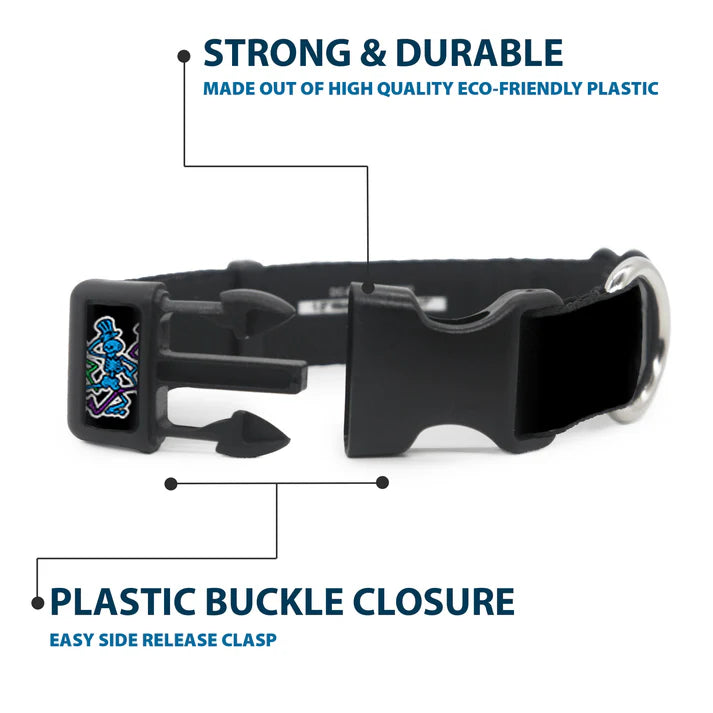 Vibrant and bold, this beautiful, polyester dog collar is made to show off your dog's unique style through all the seasons. With an overengineered plastic buckle and strong D-ring, this durable collar can hold up to whatever your dog can dish out. This product is officially licensed by Grateful Dead.