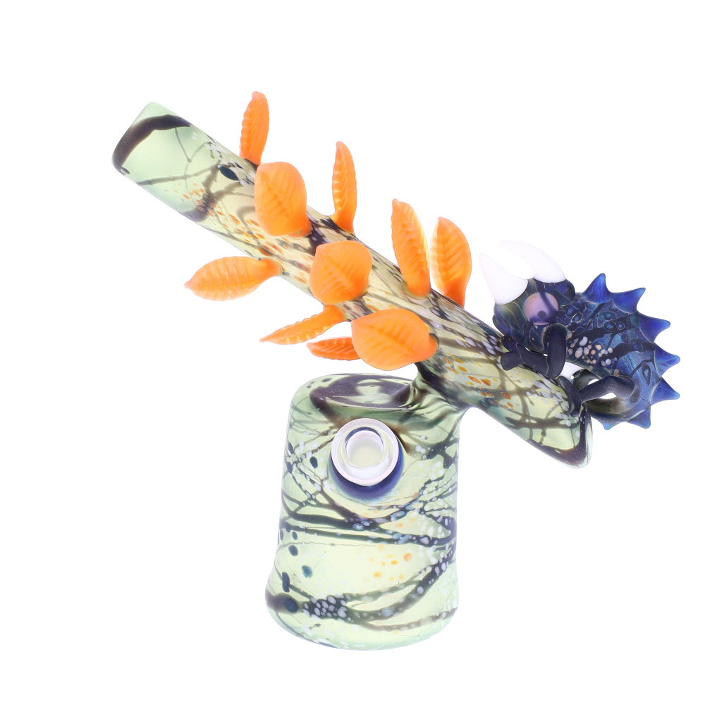 Hardman Art Glass Orange Leaf Chameleon Bubbler