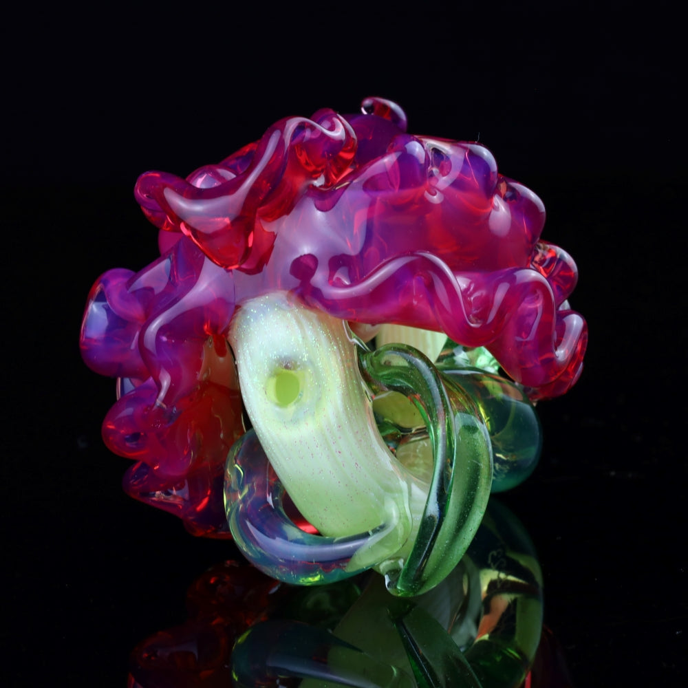 Features her own special mix of glass colors - Dichro Green Stem, Magenta Petals & Bloom