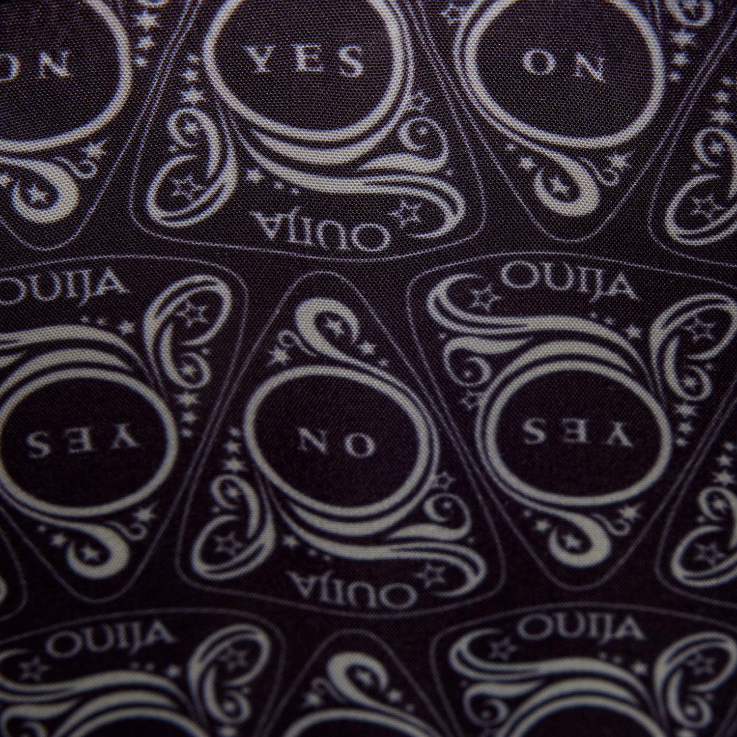 This crossbody bag is in the shape of a Ouija board planchette. You'll find ""Ouija"" written at the top and swirling designs along the front. In the center is a lenticular panel that shifts between ""Yes"" and ""No."" And the whole thing glows in the dark!