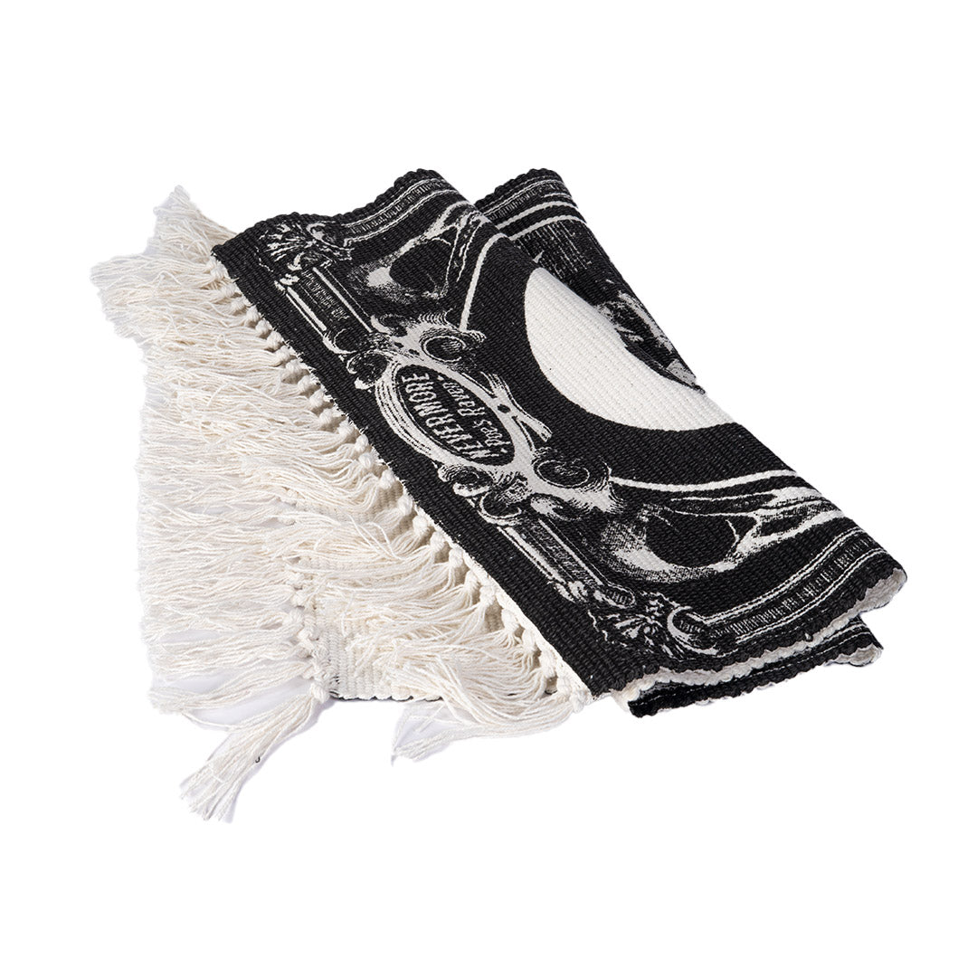 Crafted from a durable woven cotton blend and finished with classic fringe, this piece is far more than a simple rug. Its intricate design makes it an ideal wall tapestry for a study or library, a dramatic accent mat for any room, or a unique altar cloth. It is the quintessential decor for any admirer of gothic literature, dark academia, and the beautifully macabre world of Edgar Allan Poe.