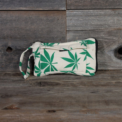 Pot Leaf Padded Stash Bag with Double Pockets - 8x5 SALE