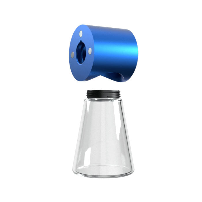 Keep your water clean with the Stündenglass Ash Catcher. Made from aircraft-grade anodized aluminum and hand-blown borosilicate glass, the Ash Catcher connects magnetically, replacing the standard 14mm elbow joint to provide a seamless way of capturing ash before it reaches your globes. The Stündenglass Ash Catcher is compatible with both full size and Kompact infusers, and can be taken apart for easy cleaning.