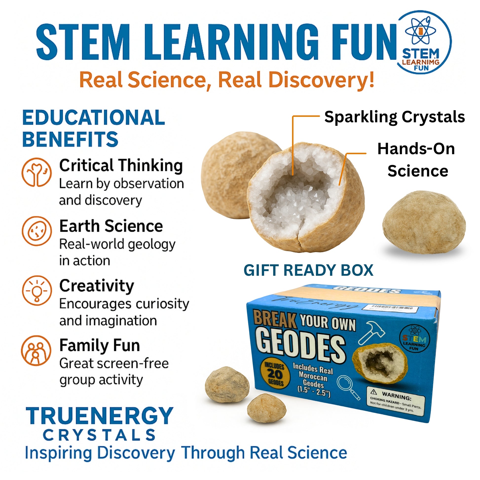 Break Your Own Geodes Kit for Kids β (1.5β5.5β) Natural Crystal Geodes with Magnifying Glass & Learning Guide β STEM Science Rock Kit β Gift-Ready Educational Set for Kids Ages 6β12